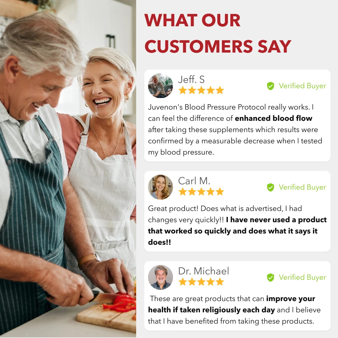 The Blood Pressure Protocol combines two best-selling Juvenon® formulas that target the key factors behind healthy circulation and cardiovascular function. The result is comprehensive support for maintaining healthy blood pressure—along with noticeable benefits like increased energy, improved stamina, and stronger heart health.