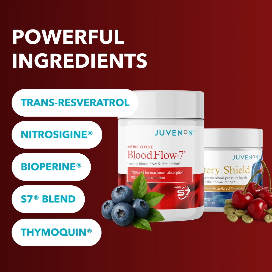 When my patients ask me how they can maintain healthy blood pressure and start feeling their best again, I tell them to try Juvenon’s Blood Pressure Protocol. Together, BloodFlow-7® and Artery Shield are the one-two punch your body needs to keep blood pressure in the healthy range. From the natural ingredients to the clinically backed results, I love everything about this protocol for blood pressure health. The Blood Pressure Protocol is safe, effective, and powerful at helping people reclaim their heart health and youthful vitality for years to come.